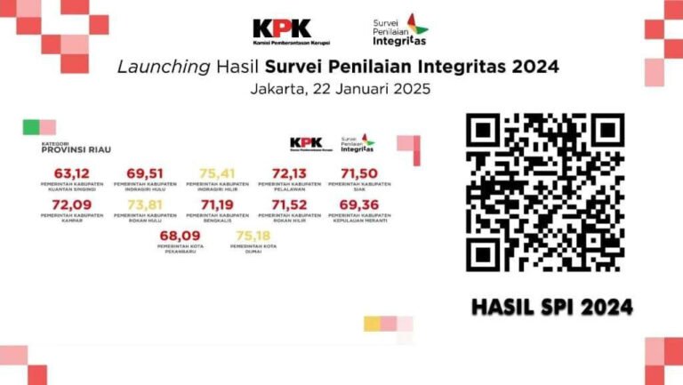 Kabar gembira ini disampaikan secara langsung oleh Bupati Rohul H.Sukiman usai menghadiri secara langsung pengumuman hasil Survey secara Nasional dalam kegiatan Launching Hasil Survei Penilaian Integritas (SPI) 2024, Rabu (22 /1/2025) di Jakarta.